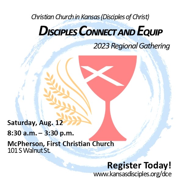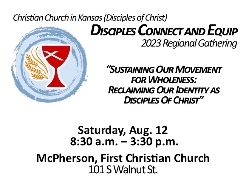 Come join us for the 2023 Disciples Connect and Equip Regional Gathering, on Saturday, Aug. 12, at McPherson First Christian Church, 101 S Walnut St.